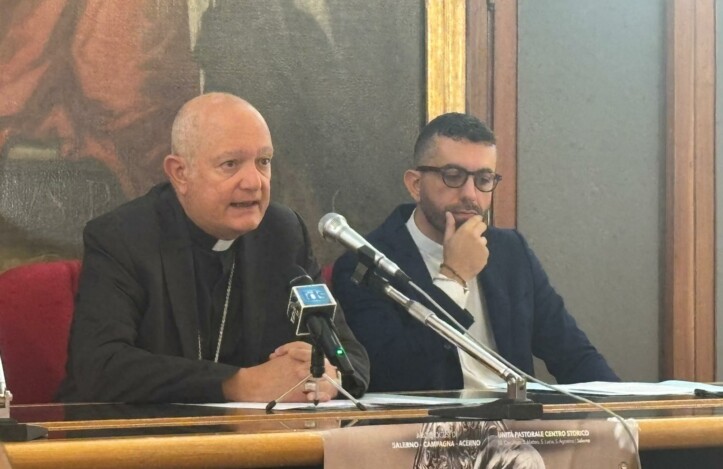 Si è tenuta oggi, 9 settembre 2025, presso il Salone degli Stemmi del Palazzo Arcivescovile di Salerno, la presentazione dei solenni festeggiamenti in onore di San Matteo, Apostolo ed Evangelista, Santo Patrono e Protettore della nostra città. Ad illustrare il calendario degli appuntamenti, l'Arcivescovo di Salerno-Campagna-Acerno, S.E. Monsignor Andrea Bellandi con il Parroco della Cattedrale, Don Felice Moliterno.